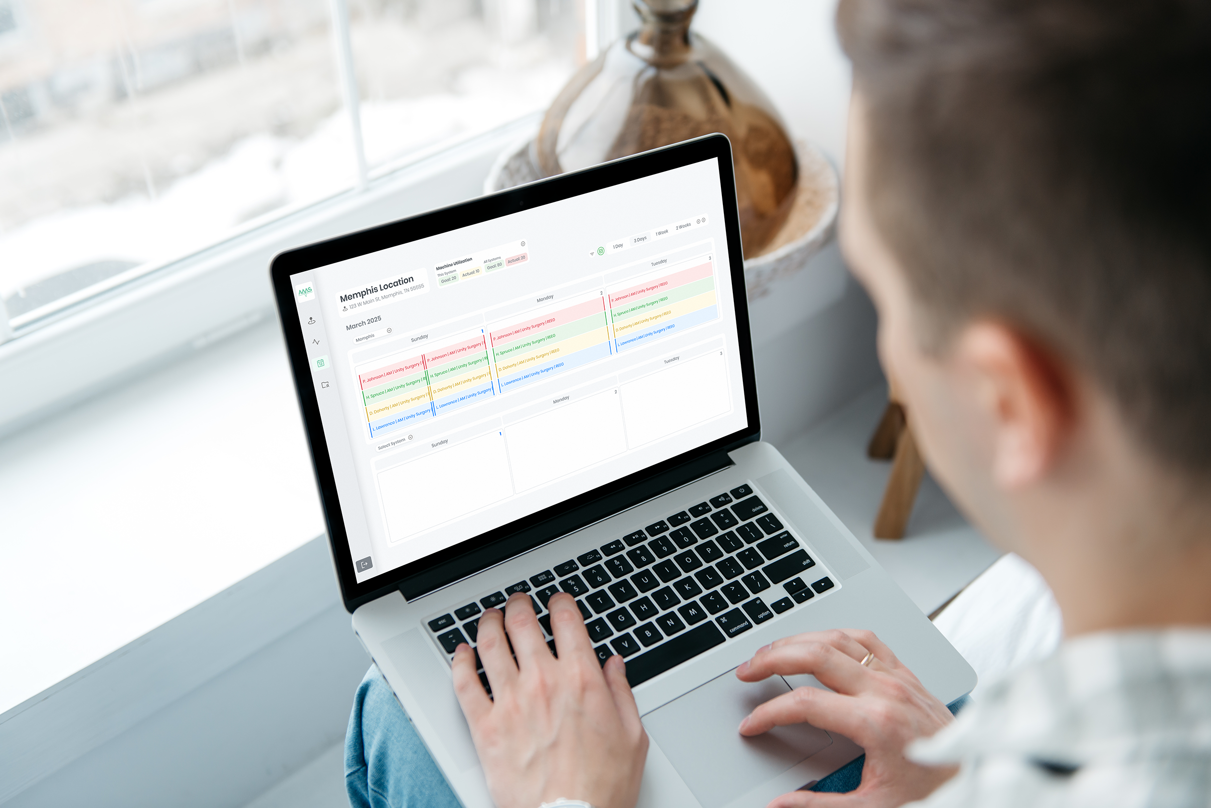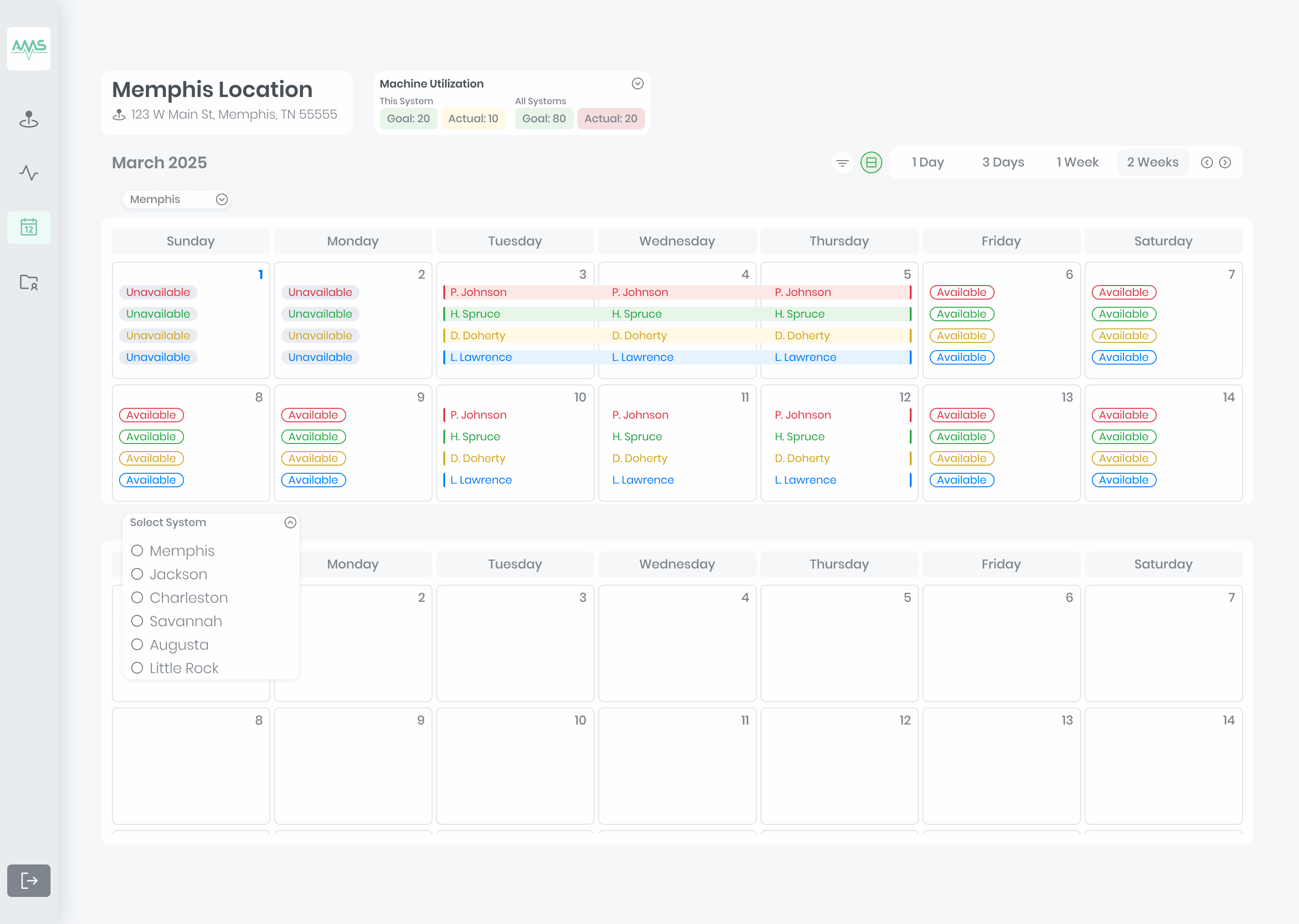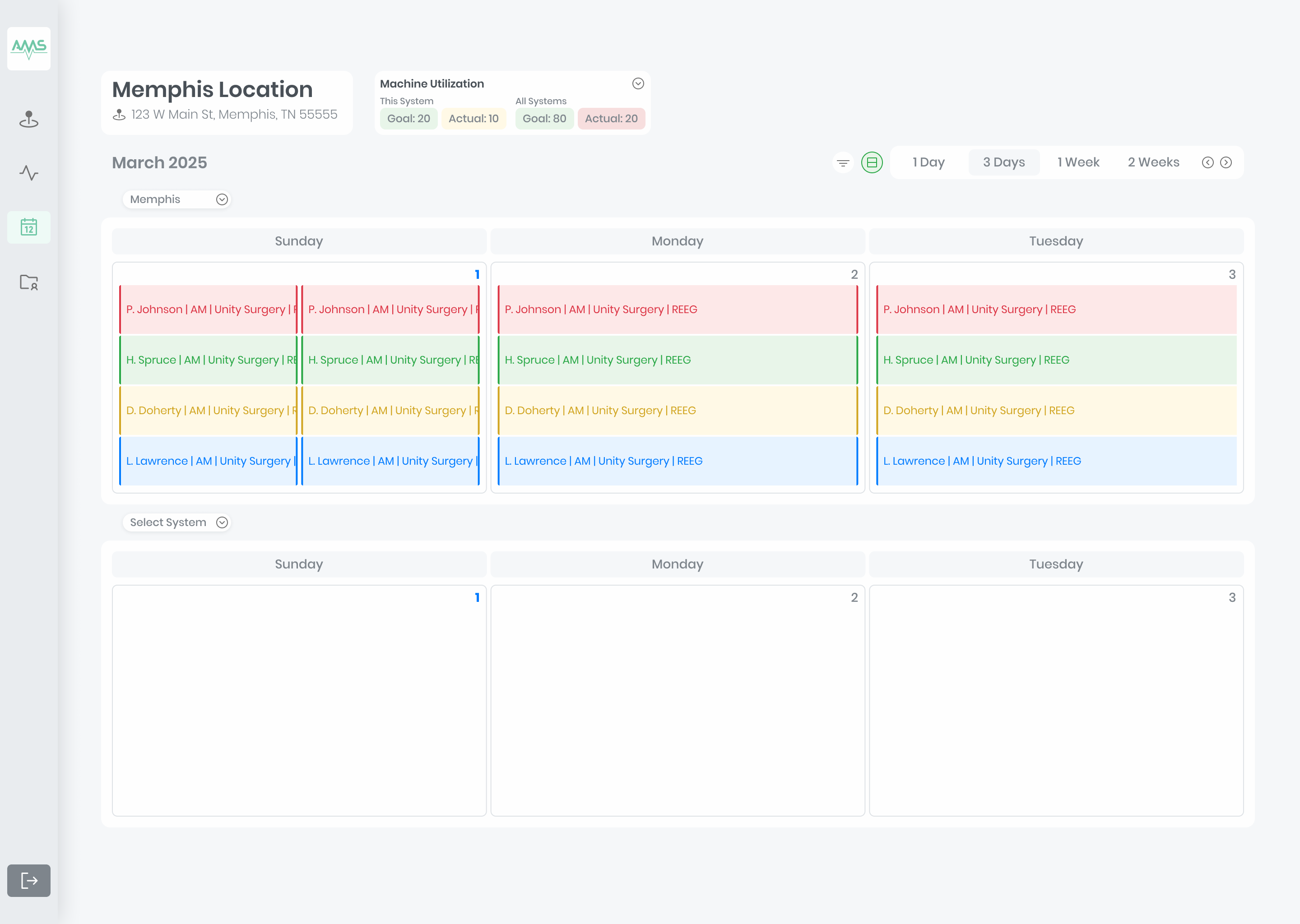 Initial exploratory research of comparable systems was conducted. I dove into employee scheduling, appointment managing, calendar productivity, and patient health database tools to derive inspiration. I also referenced the existing Excel tracking spreadsheet that AMS had primarily been relying on.