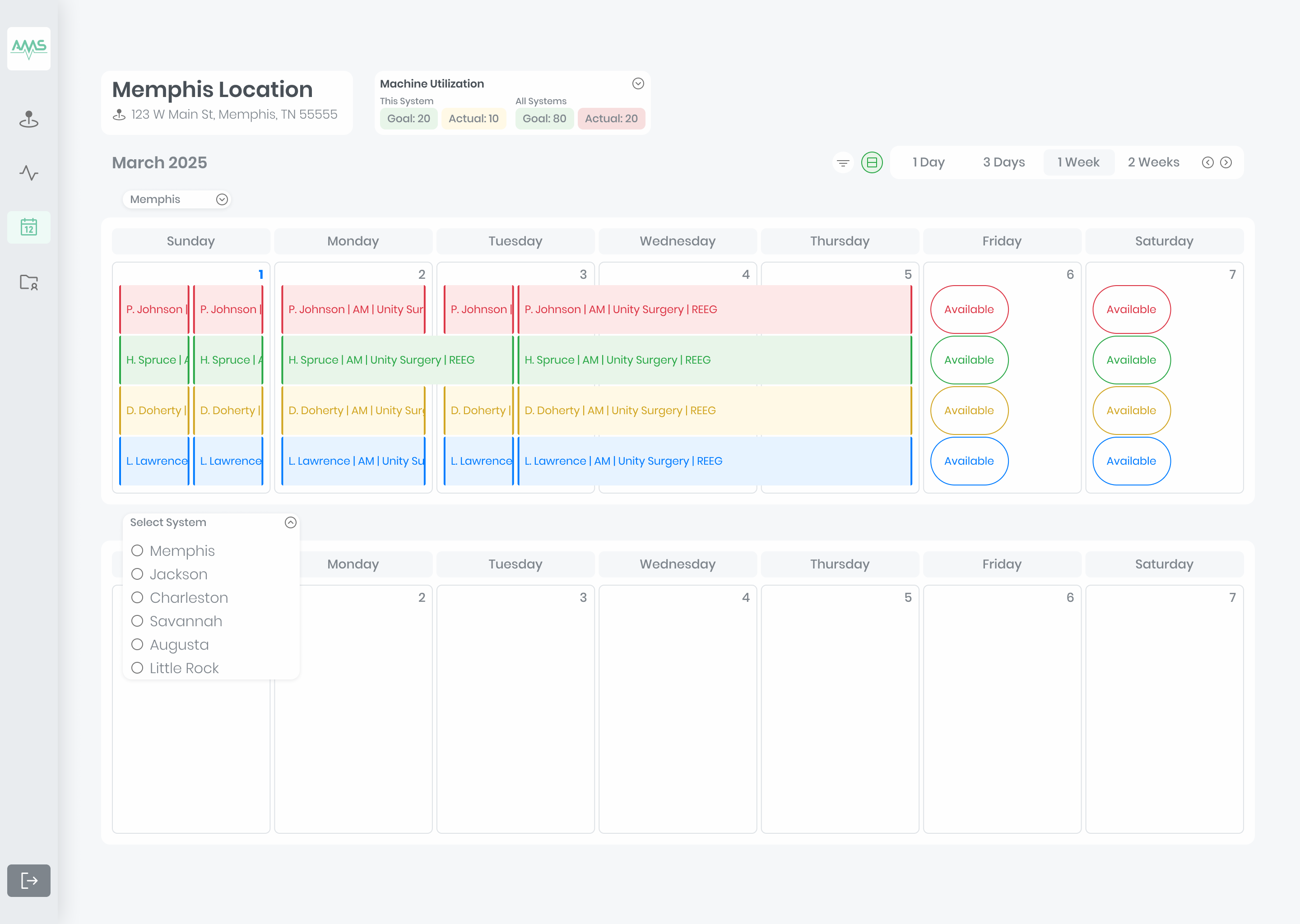 The calendar view was at the core of this project. It would be the most used tool and needed to accommodate for multiple views such as: 1 month, 2 weeks, and 1 week or 2 week comparison between locations. A color-coded device tracking tool was requested to easily identify appointment assignments for each EKG device.